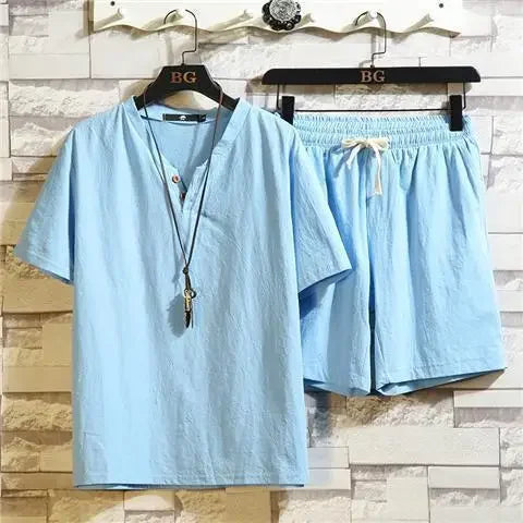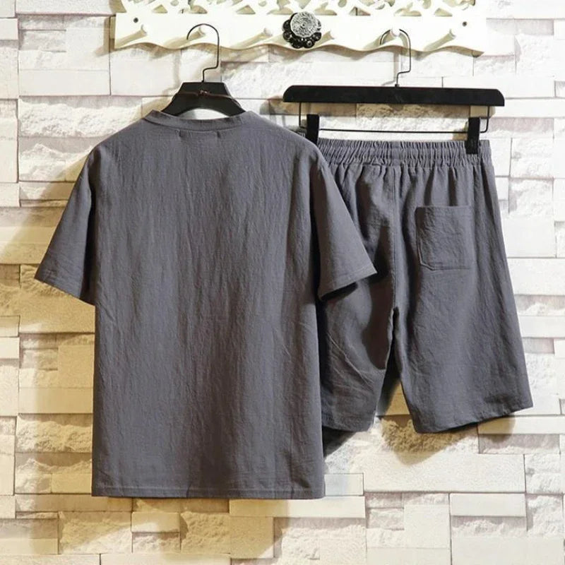 Ervaar ultiem comfort en een frisse look met deze tweedelige heren zomerset van Beeckhoven™. Gemaakt van een hoogwaardige katoen-linnen mix, is deze set ontworpen voor warme dagen waarop je er verzorgd uit wilt zien zonder in te leveren op gemak.